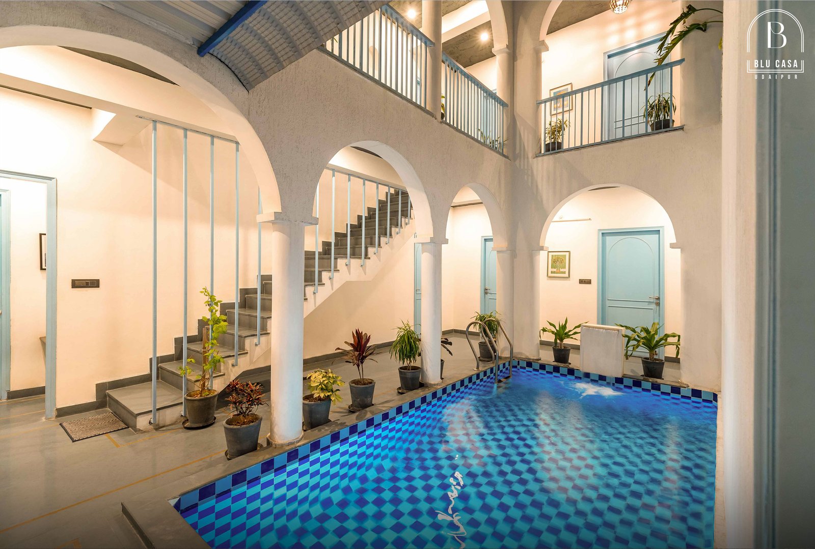 A beautiful & luxurious Greek architectured villa amid the Aravalli hills, just a few kilometres away from the famous Lake Fatehsagar. The villa is situated at a serene location, featuring 6 huge bedrooms with attached bathrooms, a well-equipped kitchen, and a rooftop sit-outs. Furthermore, there is a courtyard pool in the yard for enjoying some pool time.